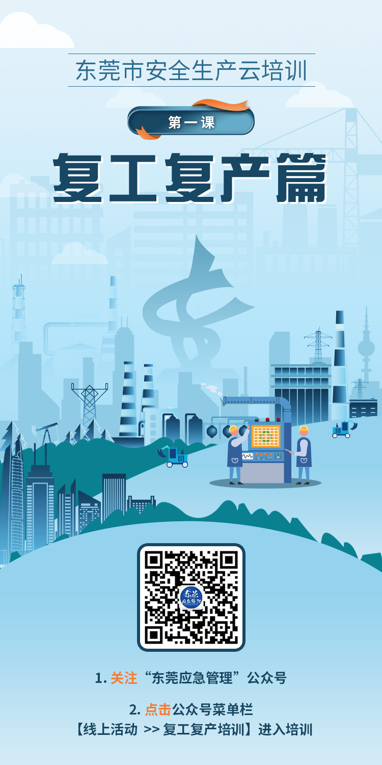 春節(jié)后復(fù)產(chǎn)復(fù)工階段,屬于各類生產(chǎn)安全事故易發(fā)高發(fā)時期,為全面貫徹落實(shí)上級關(guān)于做好當(dāng)前安全生產(chǎn)工作的系列決策部署及春節(jié)假期后安全復(fù)工復(fù)產(chǎn)的工作會議精神,切實(shí)抓好節(jié)后復(fù)工復(fù)產(chǎn)各項(xiàng)安全防范工作,堅(jiān)決防范和遏制較大及以上生產(chǎn)安全事故發(fā)生,根據(jù)《廣東省應(yīng)急管理廳關(guān)于印發(fā)<廣東省應(yīng)急管理廳春節(jié)后復(fù)工復(fù)產(chǎn)安全生產(chǎn)線上線下指導(dǎo)服務(wù)工作方案>的通知》 (粵應(yīng)急辦 (2021) 11 號)、《關(guān)于做好節(jié)后復(fù)工復(fù)產(chǎn)安全防范工作的通知》(粵安辦 (2021) 21 號)等相關(guān)要求,市應(yīng)急管理局決定組織開展安全生產(chǎn)云培訓(xùn)“第一課”——節(jié)后復(fù)工復(fù)產(chǎn)在線培訓(xùn)活動。